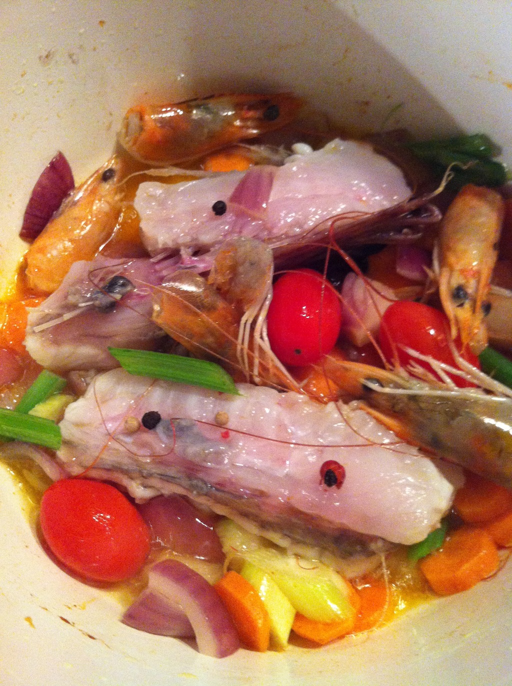 preparazione a modo mio del fumetto di rana pescatrice e mazzancolle: